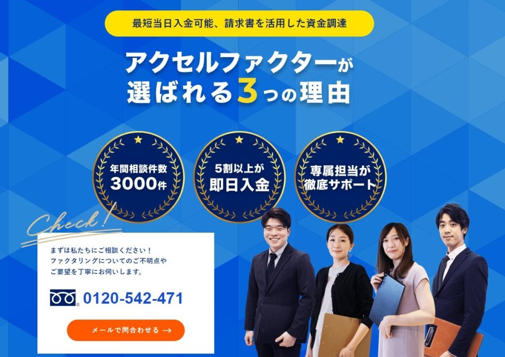 また申込完了から現金が振り込まれるまでは最短2時間程度と、当日すぐに現金を手に入れられる安心感がありますので、ファクタリングを利用する際には是非本サイト紹介の会社を利用してみてください。